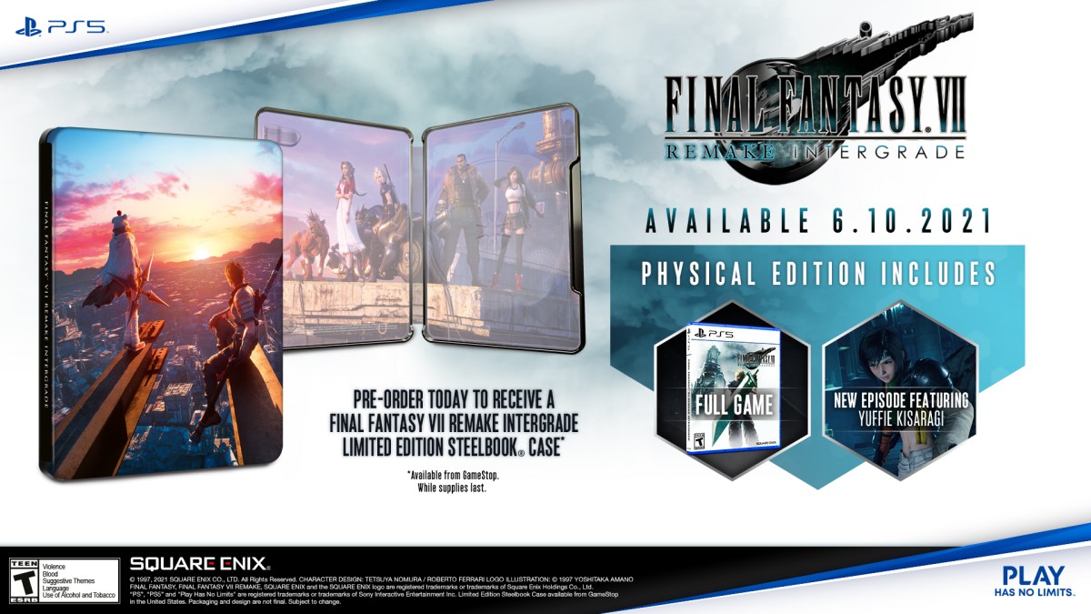 GameStop announced it will have a FFVII Remake Intergrade pre-order bonus, which is a special Steelbook case for the PS5 game. The company noted that it is a limited item available “while supplies last” and will give people an alternative way to protect the disc. Physical copies cost $69.99 at the store. [Thanks, Wario64!]
