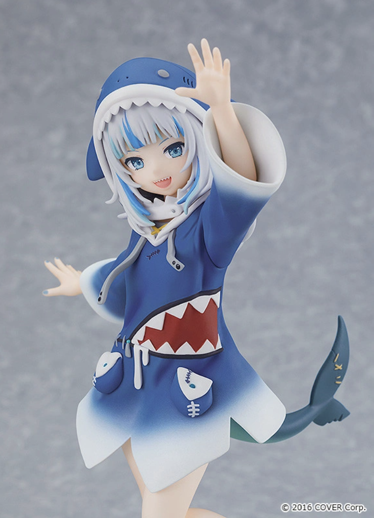 Good Smile Company is preparing another Gawr Gura figure. This one is a part of its budget Pop Up Parade line. Like the Nendoroid, it will be based on her original outfit. It will show up in Japan first in June 2023 for ¥5,500. The North American release will follow in August 2023. When it launches outside Japan, it will cost $39.99. This Gawr Gura Pop Up Parade figure has been a long time coming. Good Smile Company first announced all five members of Hololive Myth would join the collection in July 2021 at Anime Expo Lite. At the time, only their official art was used and concept art for each figure wasn’t available. Here’s a closer look at the final design. She isn’t wielding her trident for this pose. Also, unlike her Nendoroid, she is alone. Bloop doesn’t accompany her. The final figure will stand at 150mm/5.9 inches tall.