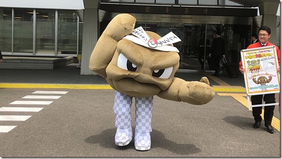 Here’s Geodude beside the official Iwate mascot, Wanko (based off Iwate’s famous Wanko Soba noodles). Update: Here’s Geodude’s official theme song below: