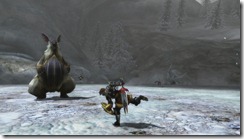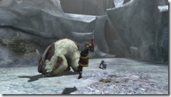 In order to survive in the Tundra’s cold and harsh environments, the Lagombi sports a thick layer of fur on its back and a strong and smooth shell coating on its belly, which allows it to slide in the snow-covered areas at high speeds. In order for you to survive the Tundra’s environments, you’ll need to defeat the Lagombi… and bring Hot Drinks. With its aforementioned shell, the Lagombi can slide away from you, towards you, and even in a circular motion to trap you in place. You’ll either need to run fast or be quick with your guarding – both options require Stamina, which will deplete faster if you stay out in the cold for too long; so again: Hot Drinks. Full monster profile here