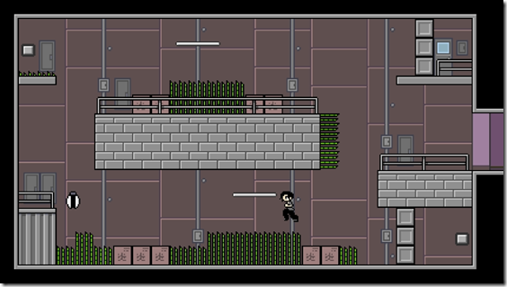 The reluctant hero finds himself in several open-ended stages, able to explore by carefully jumping, climbing, and wall crawling through the dangerous spike-filled areas. Players will have to be sneaky with some of the security systems in place, but when human opponents show up, the hero has a chance to show off his fighting skills with a flurry of hand-to-hand combos.