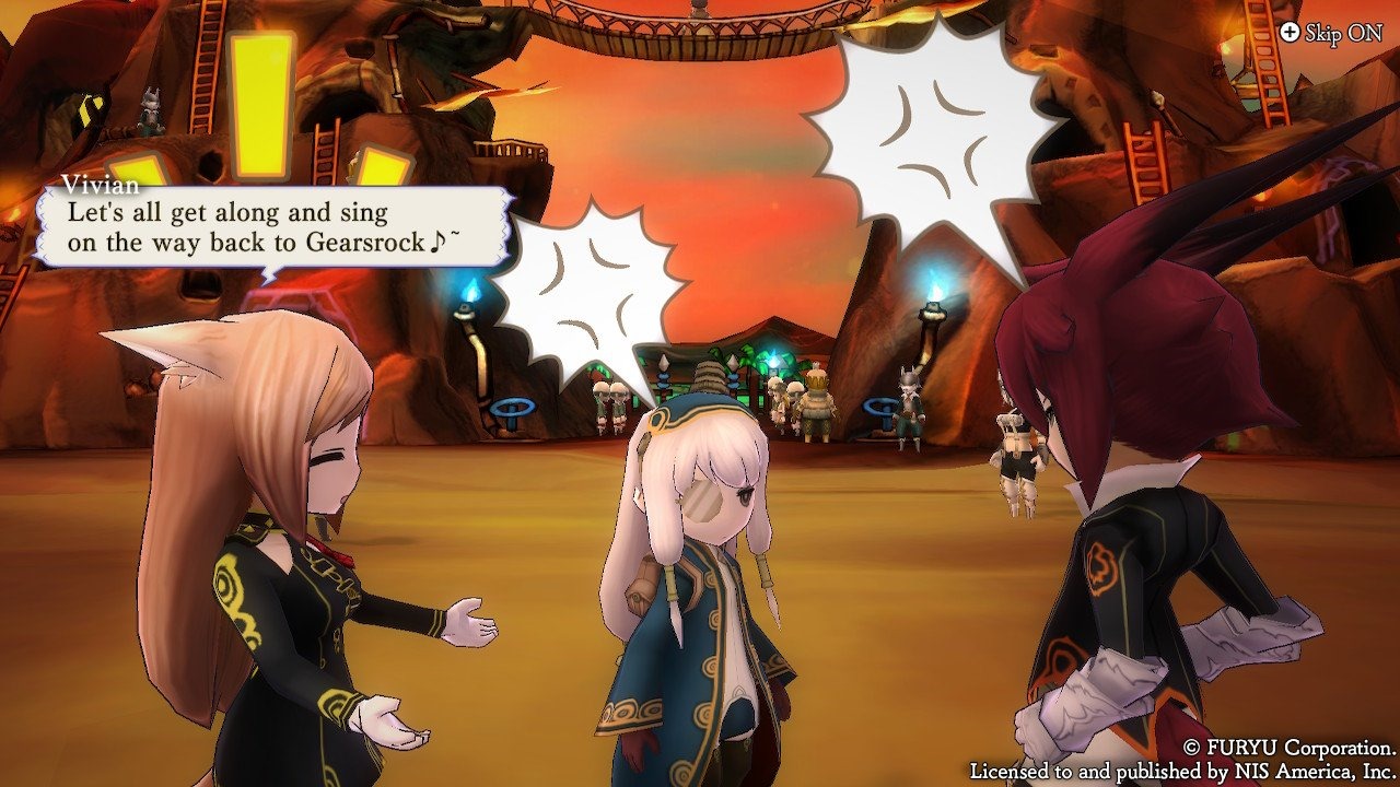 In particular, Murayama really shows his writing chops when it comes to the pacing of the story, and the game never feels like it drags on. The early game is spent setting the plot into motion, and we learn about Galil and Azura’s motivation to see the blue sky returned to the world, even if it has painful costs. But just as we reach a critical turning point in Galil and Azura’s side of the story, the game swiftly moves the scene to Gearsrock, where we get to meet the Daemon characters Vivian (best girl!) and Ignace, as well as the genius professor Tiggy. Vivian is somewhat of a weirdo, being interested in Human affairs and Sorcery, but that speaks to the attitude of the rest of her race. She’s the one who is usually explaining the Daemon angle of thinking to the rest of the party.