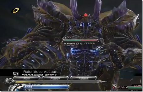You may have seen this screenshot of Bresha Ruins with a gigantic robotic hand stretching out of a pit before. It belongs to Atlas, a Square Enix representative explained. Atlas was the main enemy at the end of the Final Fantasy XIII-2 demo. Players either had the option of finding a way to control Atlas or fighting him head on, which led to a game over screen in the case of the demo.