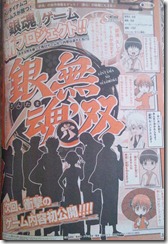 Namco Bandai aren’t slowing down with their steady stream of anime games. Next on their list is a Gin Tama game for the PSP. This has been leaked via a new issue of Shounen Jump magazine in Japan, which will be published this week.   Gin Tama is a popular manga and anime series by Hideaki Sorachi that takes place in a sci-fi world with samurai and aliens. It’s something of a parody of shounen manga clichés, but with more dramatic themes to it as well.   Titled Gin Tama no Sugoroku, the game has no release date yet. Jump doesn’t provide any details either, but more details regarding the game will be announced in next week’s issue.