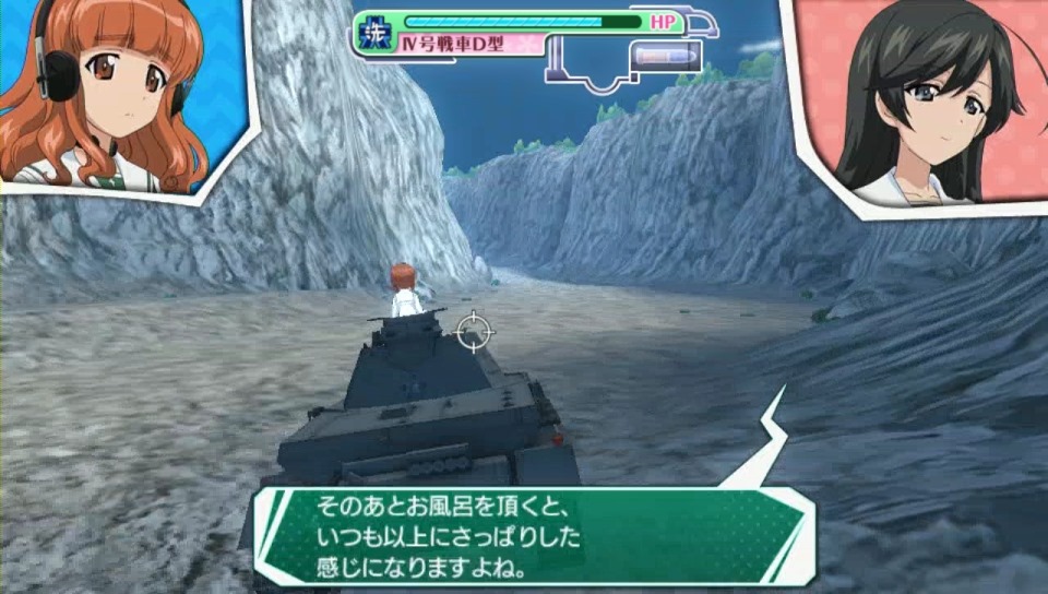 Girls und Panzer: I Will Master Tankery has a third person camera in normal mode that shows your character and the tank. Want more precision when firing shells? Switch to scope mode. It’s kind of like Silent Scope, but with more Miho Nishizumi.