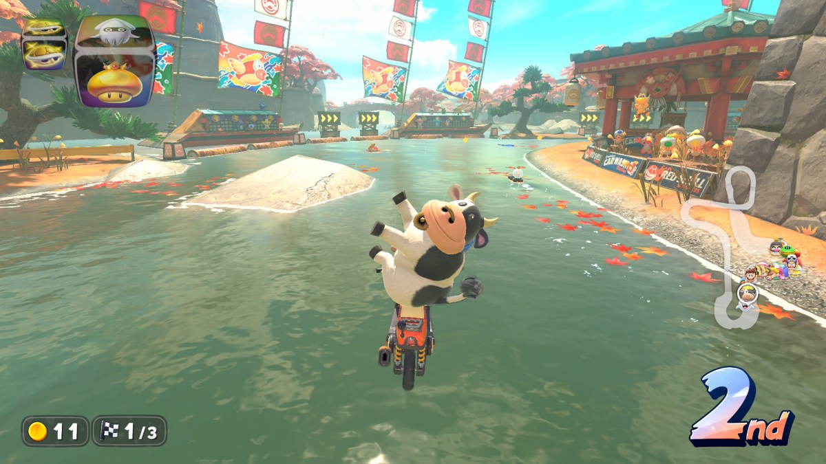 Dash Food is one of the more fun surprises in Mario Kart World. Grab a meal, get a speed boost and maybe a costume! I have sacrificed first or second place in a race to ensure someone gets a snack when I know I’m missing one of their outfits. But there’s one tragedy here. You can’t dress up Cow in costumes in Mario Kart World, and it’s one of Nintendo’s greatest failings in an otherwise exemplary game.