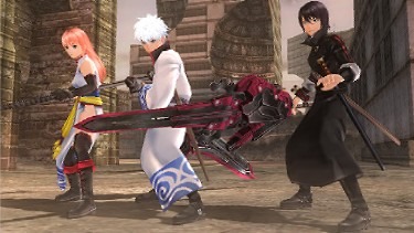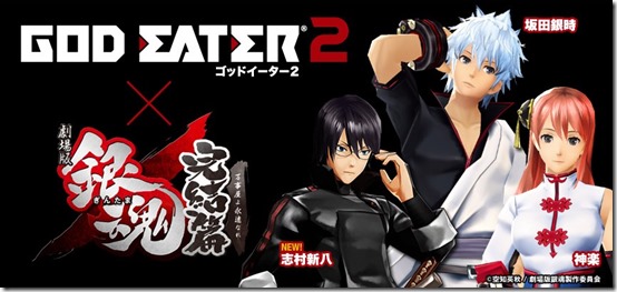 The above is a look at future glasses— I mean, Shinpachi, along with his buddies from Yorozuya. His costume has been added to God Eater 2 together with the 1.2 update.