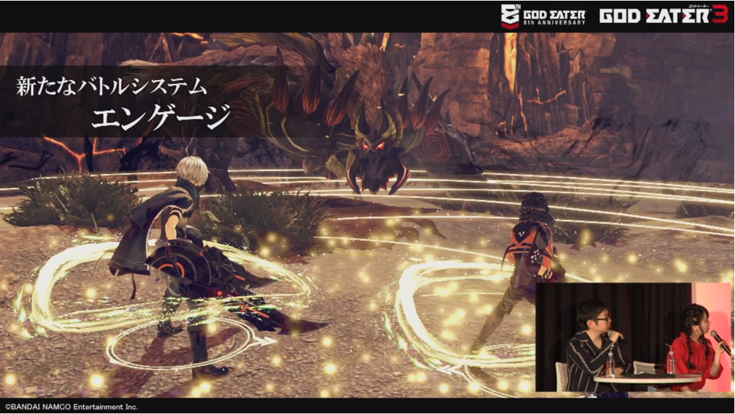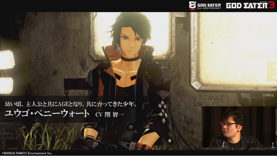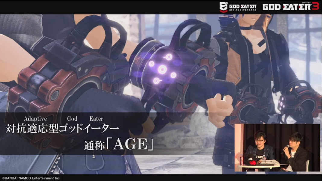 ge3 4 God Eater 3’s second trailer was revealed today on the God Eater 8th Anniversary live stream, and following the trailer God Eater 3 producer Yuya Tomiyama went in-depth on the game with a live playthrough.   ge3 1   Firstly, Tomiyama talked a bit about the setting of the game. The world of God Eater (in the future of God Eater 2: Rage Burst) currently being threatened by a new ash-like mist which turns everything it touches into dust, the “Ash Zone”. Furthermore, the Ash Zone continuously expanding.   ge3 2   The Adaptive God Eaters (AGE) are the characters we have seen in the trailers so far, chained up and living in a prison-like area. The AGEs have a resistance towards the Ash Zone, so they are able to work for a longer time than regular God Eaters, especially in areas with a high percentage of Ash Zone.   The AGEs are special people who live in a harsh environment, and are under strict orders to work in the Ash Zone. The developers described their role as the people who do the dirty work in Fenrir. They are locked up because of their powers, but they’re still partially seen as the savior of mankind against the Ash Zone.   ge3 3   Hugo Pennywort, the new character who appeared in the new trailer, is a young man who became an AGE alongside the main character when they were children.   Hugo grew up alongside the protagonist in the prison, and his last name, Pennywort, is actually the name of the prison they are locked inside. As such, his name can be interpreted as, ‘Hugo, of Pennywort prison’. The rest of the AGEs in Pennywort prison actually also share the last name Pennywort.   ge3 4   The Engage system is a new battle system in which players and their allies can share their buffs after activation. In order to use the system, an Engage gauge needs to be filled up by fighting near allies.   This system was actually one of the battle systems conceived for God Eater 2, but only finally made it into God Eater 3.   ge3 5   After giving a lot of thought to the release platforms, PS4 and PC via Steam were decided as the platforms for the game, to reflect the evolution of the game. The developers also promised experiences that can only be done on a home console.   ge3 6   Going into gameplay, Tomiyama showed off the combined staff form of the dual swords. While in this mode, the player can use strong attacks, but the Stamina gauge will not replenish in this form. Therefore, careful management and switching between the modes is required.   ge3 8   In God Eater 3, players will now be able to devour Aragami while jumping.   ge3 9   The Ray Gun is a laser beam Gun mode weapon, which steadily increases in power the longer it is fired. (Shown by the beam becoming increasingly thicker) The developers advise players to find the right timing and use all their OP in one go for this type of weapon.   ge3 7   The developers then showed off a fight against the Anubis, which can enter its two-legged Burst Mode if it devours the player character or their allies. In this state, they change patterns and do more damage.   ge3 11   If a player is devoured by the Aragami, they enter a ‘Link Burst’ status where they are unable to request for aid from other players. If the player loses all their health in this state, they will immediately respawn and cannot be revived by an ally. Furhtermore, the Engage system cannot be used.   ge3 10   By reaching certain requirements, a new ‘Accel Trigger’ system will be activated. In the gameplay shown, the Guardian Lv.3 Accel Trigger is activated thanks to a Perfect Guard, and increases the player character’s attack power. This buff can also be shared when using the Engage system.   God Eater 3 is in development for PlayStation 4 and PC.