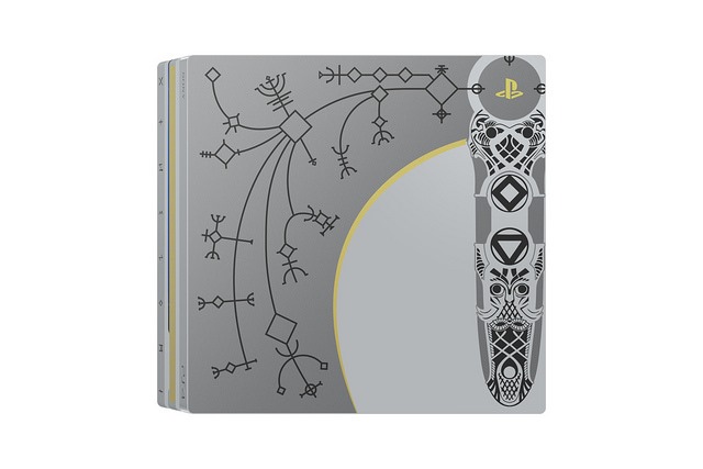 The God of War PlayStation 4 Pro is a 1TB system inspired by Kratos’ Leviathan Axe. It has the axe’s skill tree on the surface, runes representing the game’s realms on the side panels and the handle design. It is paired with a copy of the game and a Leviathan Gray DualShock 4 that has Huldra Brothers and God of War branding on it. It will be $399.99/CAD$499.99.