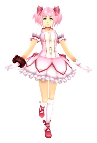 The girl is from Mahou Shoujo Madoka★ Magica. Kaname Madoka is the protagonist of the anime series. As the blog puts it, “Decimate the world’s Aragami with your overwhelming magic power! Link-Aid your partners when they’re running low on strength! We hope you use this and fight like Madoka would!”
