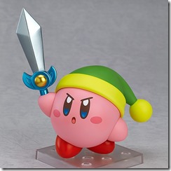 The Kirby Nendoroid is ¥4,500 through the Good Smile Company Online Shop, which is about $37 USD. He also includes parts that make it look as though he is using the Fire and Sword copy abilities.