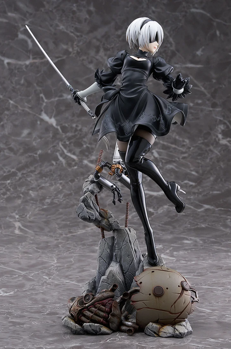 The latest NieR: Automata 2B and A2 figures and figmas are in development. The anime series is streaming on Crunchyroll. The game is available on the PS4, Switch, Xbox One, and Windows PC.
