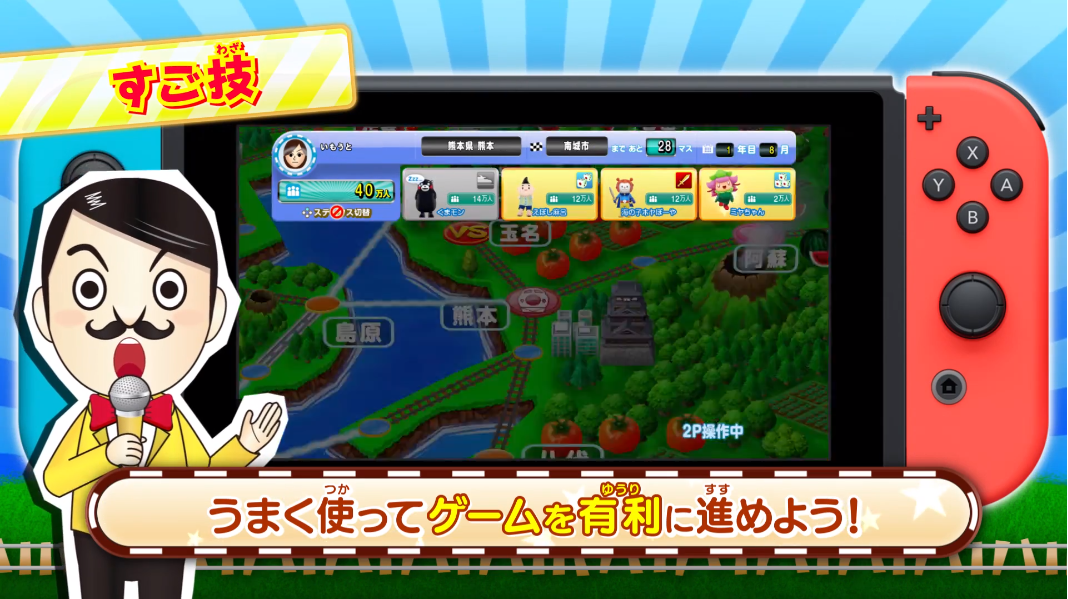 Gotouchi Tetsudou, a Nintendo Wii U and 3DS title that has various mascot characters gaining fans in a digital board game that spans Japan, is being re-released on Nintendo Switch. The game will be released on the newest platform on February 22, 2018.
