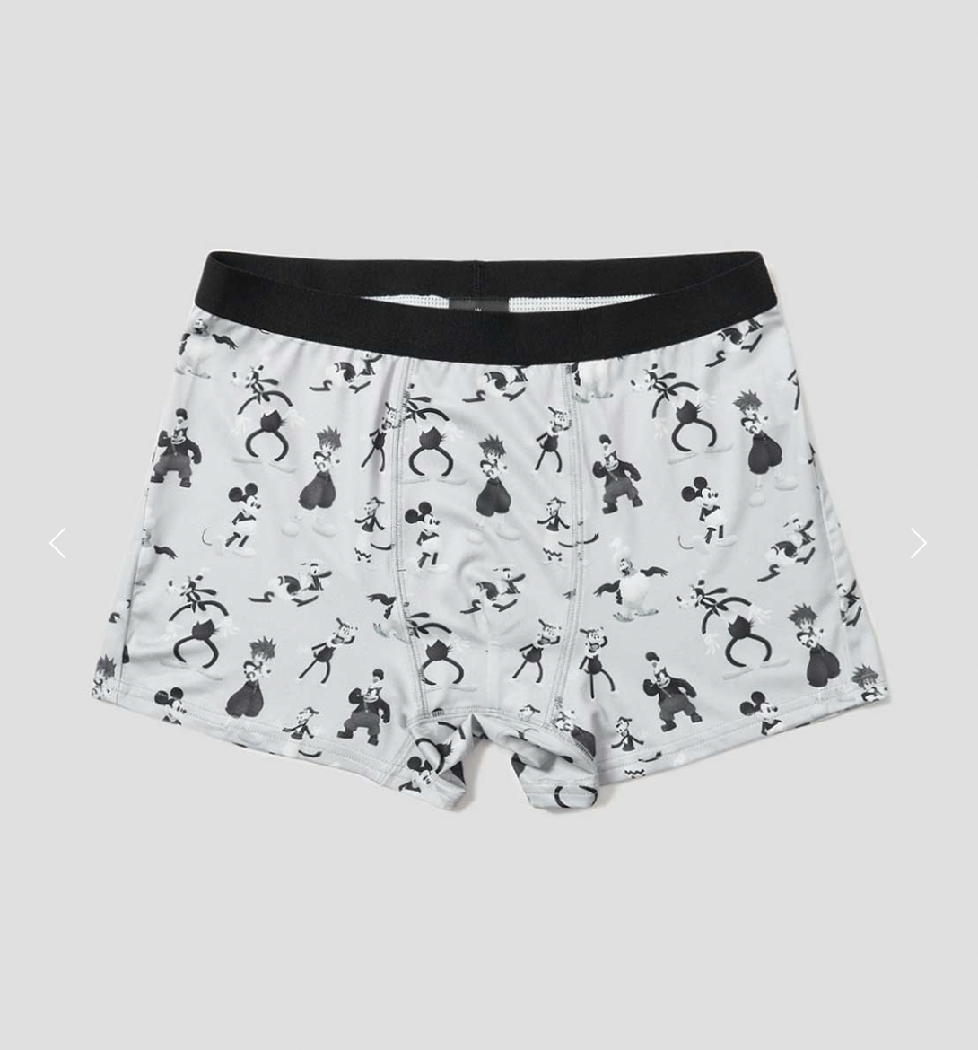 The other items in the collection are more varied, and they can feature iconography in addition to characters and familiar elements like Keyblades. Two pairs of pants are available for ¥7,900/$68. These are both black with designs from the series and appear in sizes SS through XL. Keyblade and Timeless River boxers are available in M through XL, and as there is no front opening they could be worn as shorts. Those are ¥1,900/$17. As for accessories, there’s a ¥3,900/$34 hat with Mickey holding a Keyblade, a bag with Mickey in the Organization XIII coat for ¥6,500/$56, a ¥3,900/$34 drawstring bag with Chip and Dale on it, and two pairs of ¥1,200/$11 socks in S and M sizes.