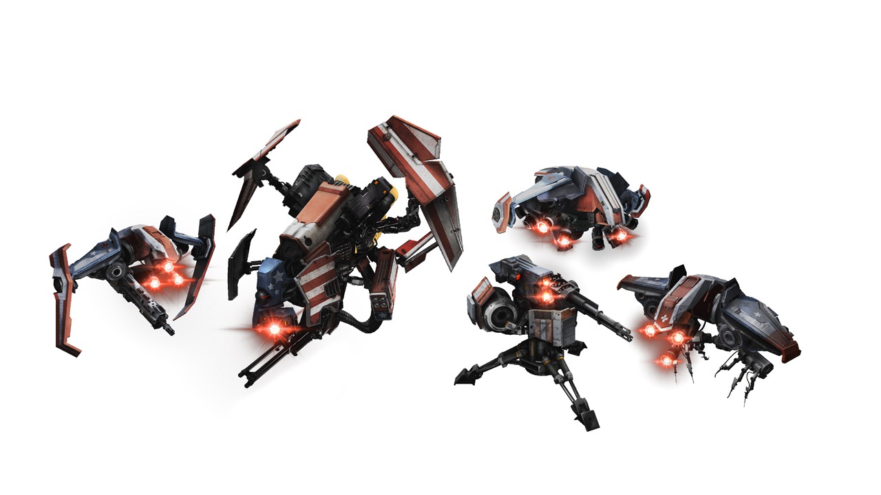 In addition to these, picking up the game early will also net you a soundtrack CD, special multiplayer action and even more drone skins below, which include a Stars and Stripes set (which looks very Captain America); Shark, which reminds me more of Macross’ Skull Squadron; and Guerilla.