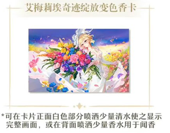 The eau de toilette set costs 980 CNY ($136.95) while the eau de parfum set costs 1190 CNY ($166.30). You’ll also be able to get a fan, a necklace, a charm (that you can attach to the fan), and a smelling card. The card will feature Emilie holding flowers that resemble the vibrant Genshin Impact fan for the Guerlain collaboration. If you spritz water on the front, it can change color and you can also spritz some perfume of your choice on the back. As for the necklace and fan, you can spray them both with perfume to let them carry a fragrance.
