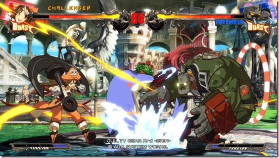 As someone who is familiar with these games, from a purely gameplay perspective the only thing that bothers me about Xrd is how safe it feels. There’s no question that the visuals are amazing and the new soundtrack rocks, but those are superficial changes. Comparing Xrd to its predecessor, Accent Core Plus, they’re extremely similar games in terms of play and mechanics. There’s a couple of new characters in Xrd, sure (and I’m a big fan of Bedman in particular), but the vast majority of the cast is returning which makes the entire game a bit too familiar. Right now, I’m fine with that simply because it’s been so long between games, but I hope the next installment changes things up a little more. What may also be a challenge for newcomers to get into is the story mode. The Guilty Gear series is now over fifteen years old and has established some pretty formidable lore, and Xrd expects you to be familiar with a lot of it. Even if you do know most of the backstory, you’ll want to play through the Arcade mode first as homework, as it serves as a direct prequel to the events of the story mode. Thankfully there is a Library mode with entries on virtually every aspect of the Guilty Gear universe to help get you caught up, but be aware that there’s a lot of required reading to really get a grip on the game’s events. A major change from previous ArcSys stories comes from the complete removal of gameplay. Now things progress much more like a movie, with the only player input coming from saving the game inbetween chapters. This seemed to be the direction ArcSys was going in with Blazblue: Chrono Phantasma earlier this year, which also featured a reduced amount of fights, but it still had them during the game’s pivotal moments. In contrast, Xrd has nothing, which makes some of the more important events feel a little limp. Aside from the removal of fights, though, this is probably the highest quality story that’s ever been in an ArcSys game. The cutscenes are dynamic, the characters are all as eccentric as ever, and the overall series’ story gets pushed forward in interesting directions. There are a lot of well-done scenes backed by excellent tracks performed series creator Daisuke Ishiwatari that end up being surprisingly emotional. It’s not some masterpiece of video game writing by any means, but it’s a fun and engaging enough tale that kept me interested until the end.