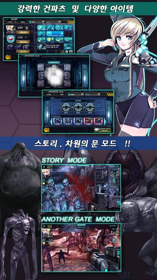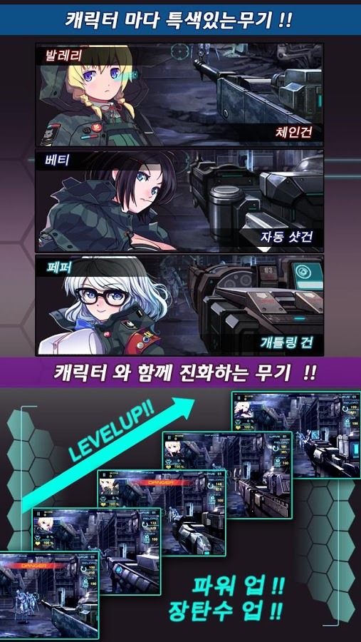 Gun Fire Girls is a popular Korean shooter. It features three women with ridiculously oversized gun in a post-apocalyptic setting, who are purging the land of an undead/demonic menace. The catch is that it isn’t played on the PC, but on smartphones. It’s part of Kakao’s lineup of titles like Touch Bunny. (Kakao, for those that aren’t familiar with it, is a mobile messenger app similar to WhatsApp or Line.)