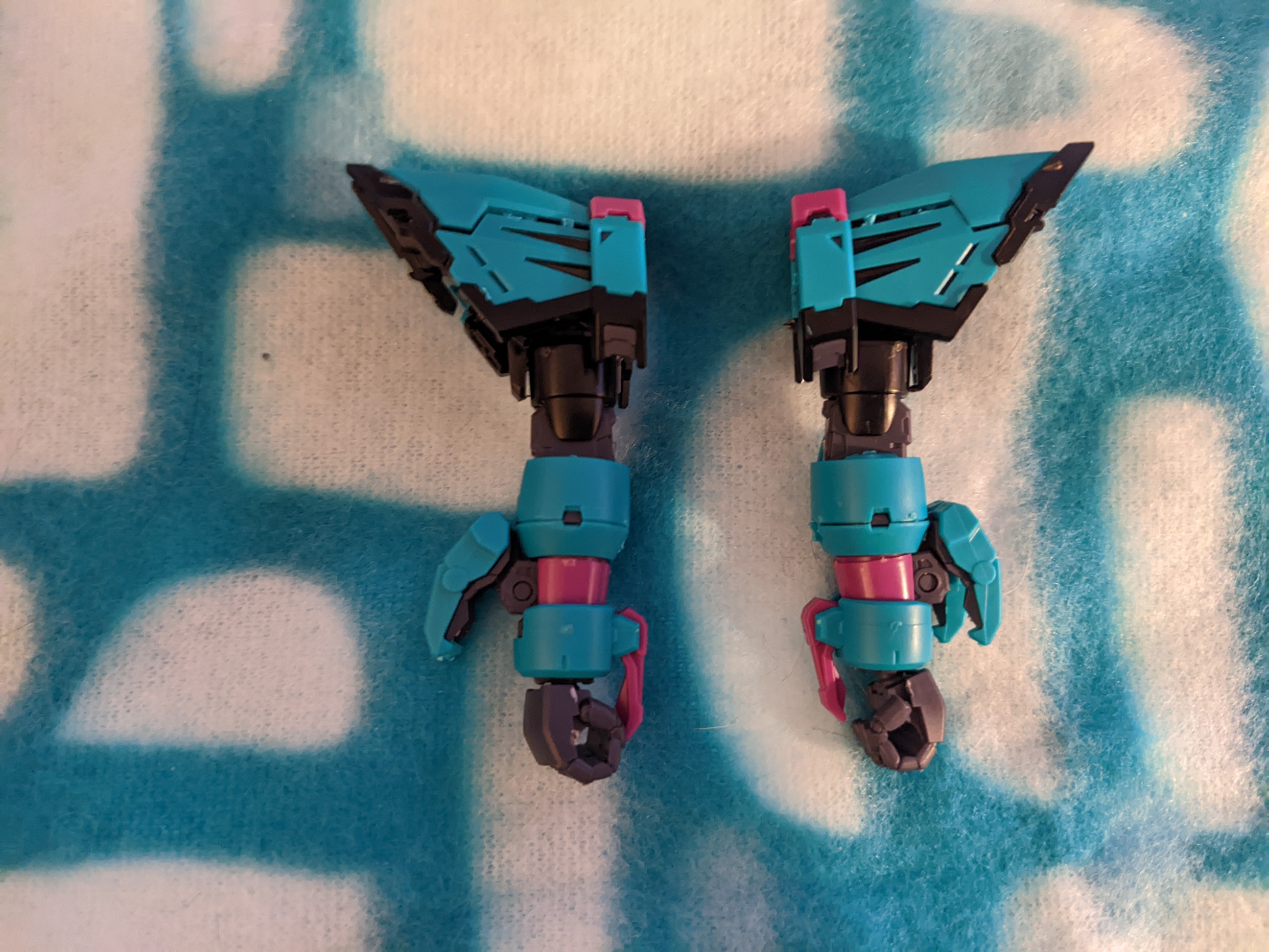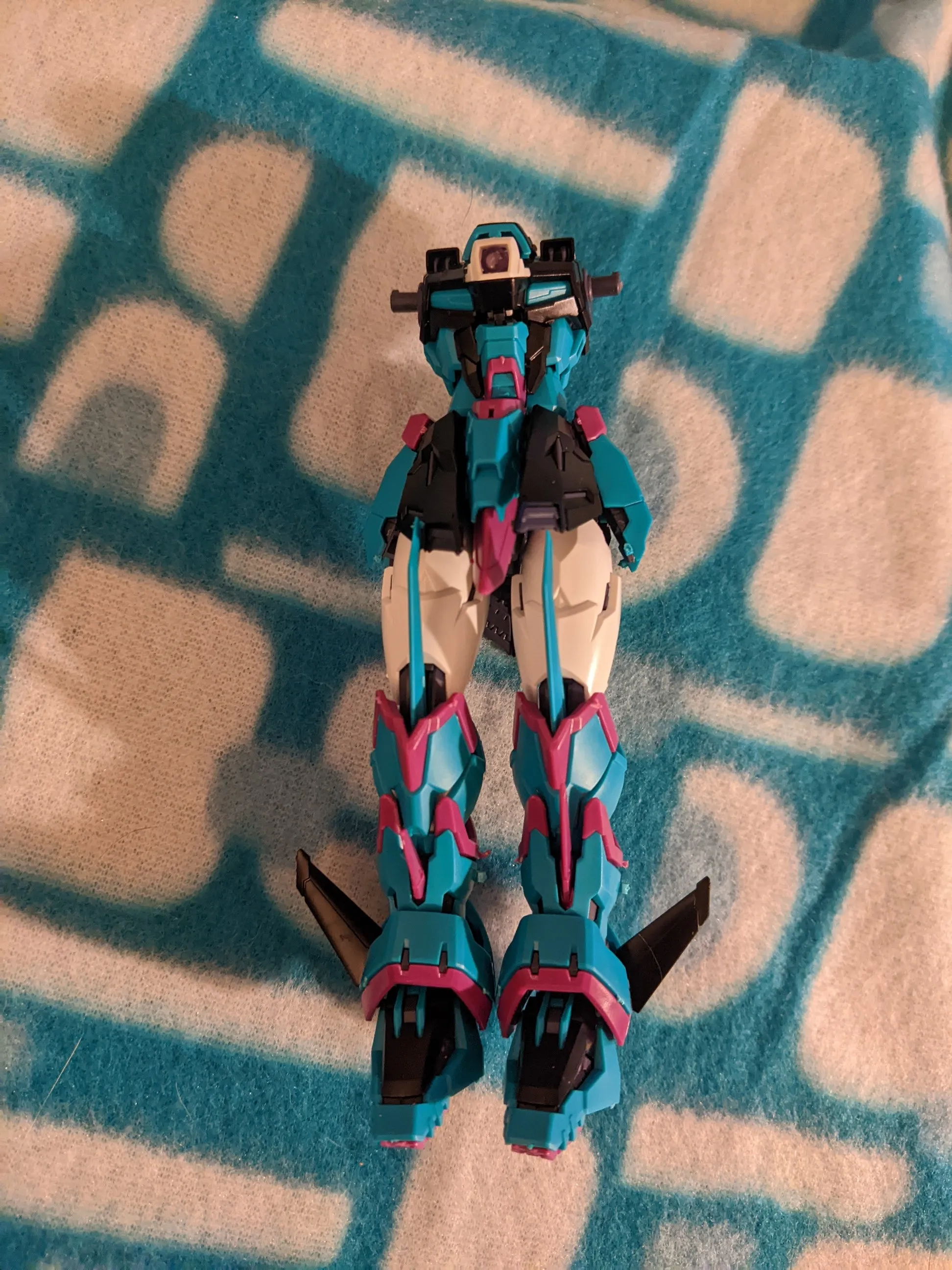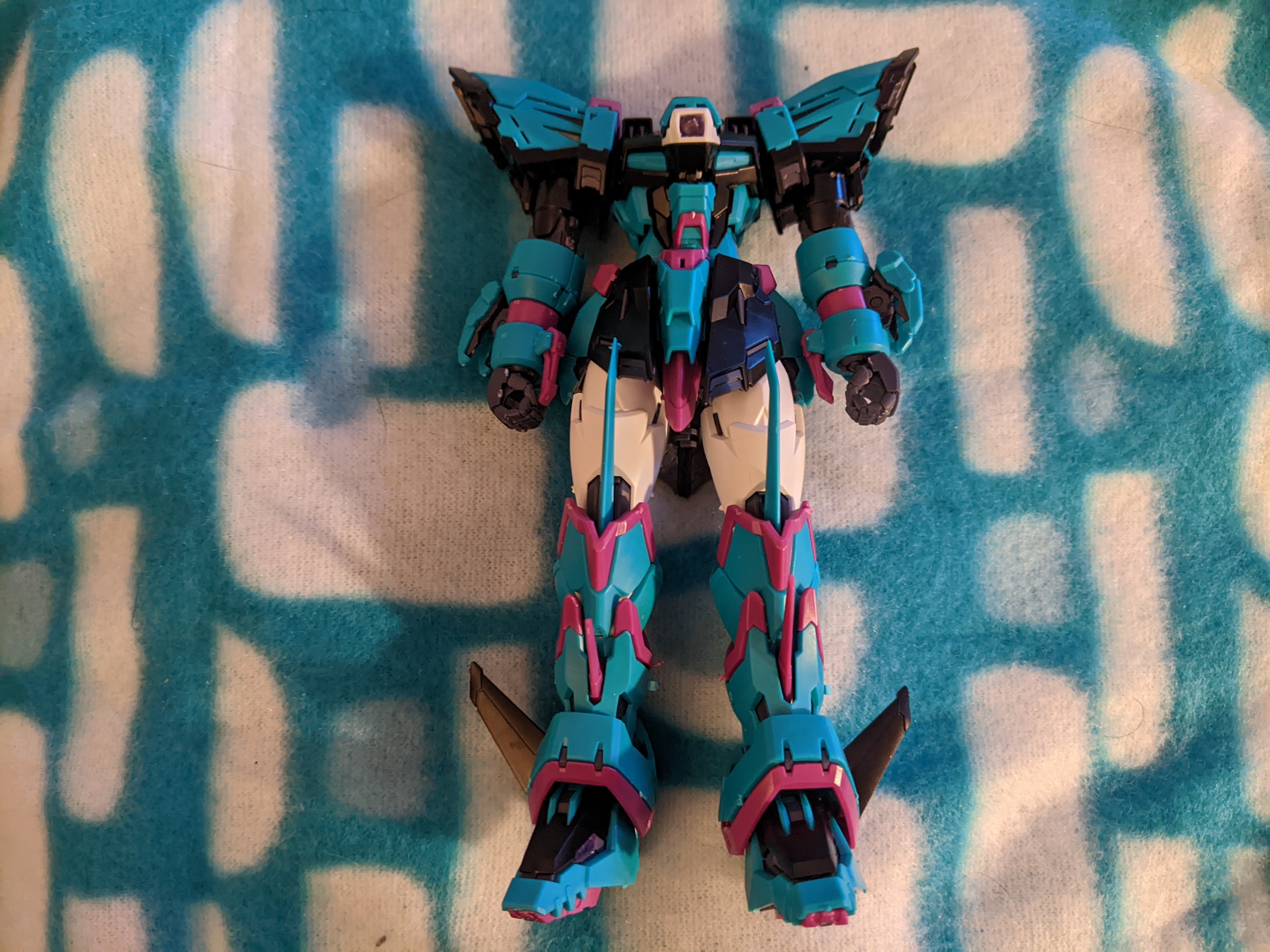 As for the final build itself, I’m really impressed with how the Gundam Epyon Apex Legends Alter Version model kit looks when finished. The color references to Alter are on point, with the black and white elements already present and the magenta and teal referencing her accessories, outfit, and hair. The Epyon Shield’s Heat Rod almost already felt like a reference to the segmented accessory attached to Alter’s back. I mentioned it’s a color scheme similar to the Hatsune Miku Gundam crossover kits, which is true. I also feel the extra teal suits the armor better than the magenta being used as a primary color, as it really makes the darker accent colors peek through better at every point. It’s really striking and eye-catching, and you can see the the contrast right away.