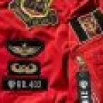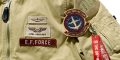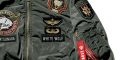 Johnny Ridden‘s nametag along with various referential patches and insignias. Similarly, the grey jacket is based on