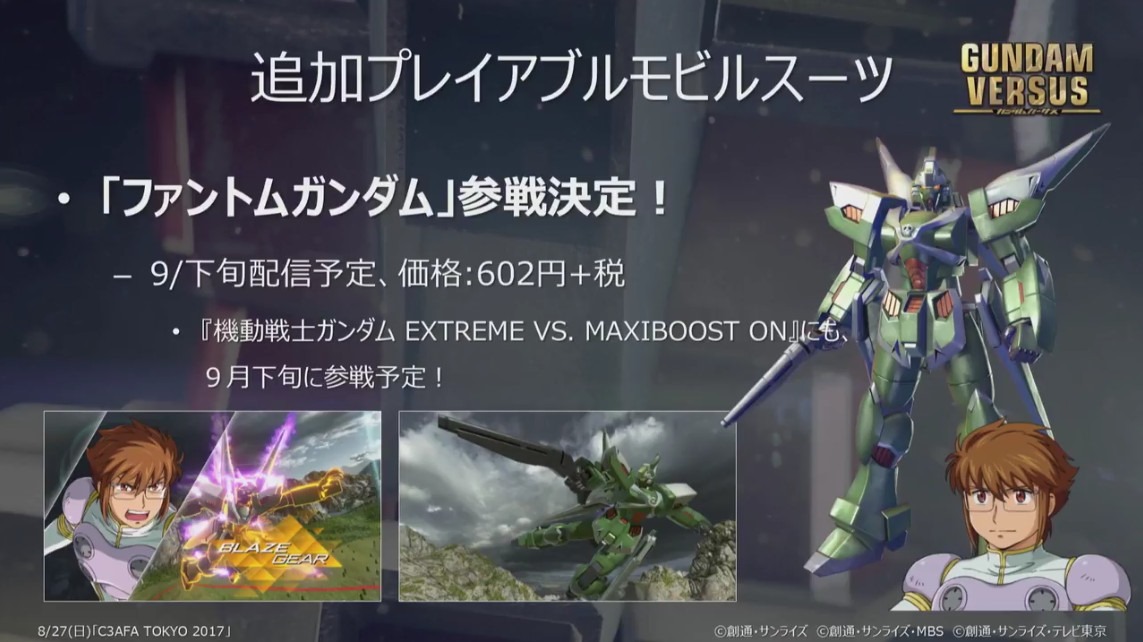 During a recent Team Battle Tournament for Gundam Versus at C3AFA Tokyo 2017, Bandai Namco revealed Phantom Gundam and Nightingale will be added as playable Mobile Suits in late-September via DLC. You can head to the 55:29 mark of the video for a trailer revealing Phantom Gundam.