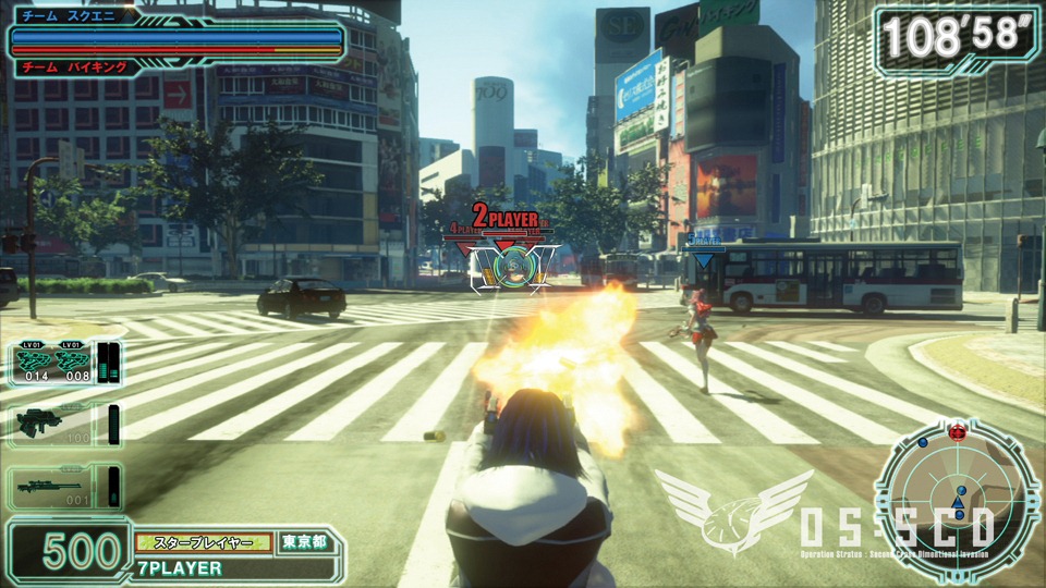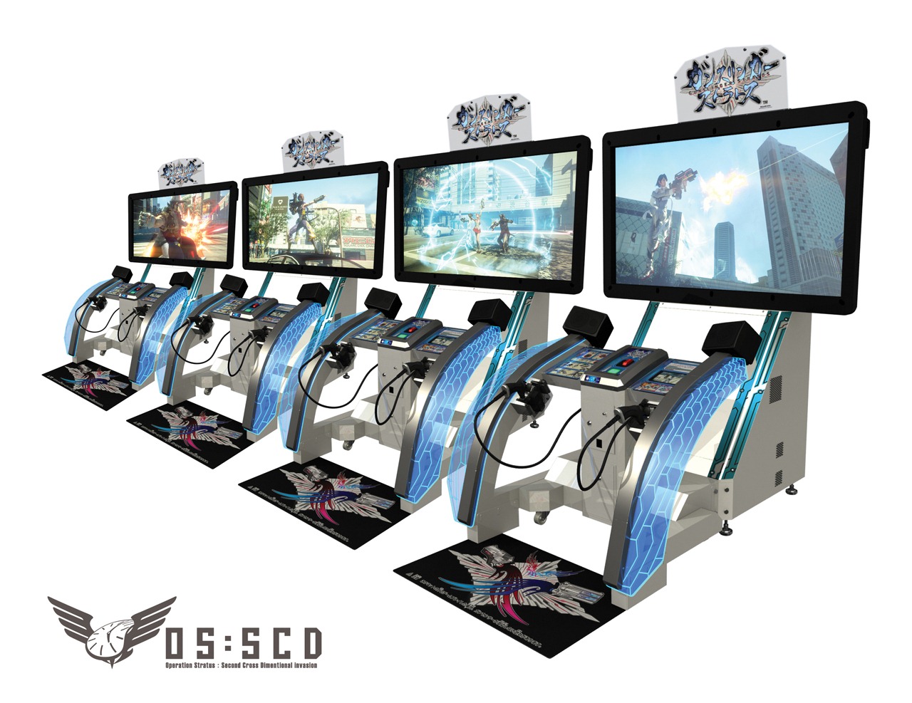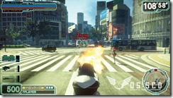Gunslinger Stratos is played with four players, but the game can actually support eight. You can play in a free for all mode online with gunslingers across Japan. Or team up with your friends in the same arcade and take on the nation. There are also single player missions and co-op missions. Stages will be based on real world locations like Shibuya shown in these screenshots.