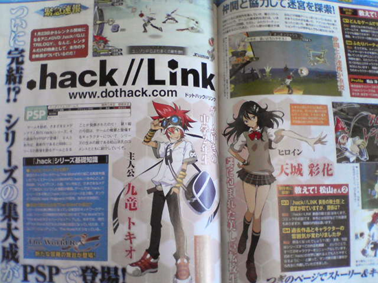 After two sagas of PlayStation 2 games Namco Bandai is taking the .hack series to the PSP with .hack//Link. By the title and character art alone this looks like it’s based on the manga of the same name. One thing for sure is the characters are the same. However, the Famitsu photo is too blurry to make out any critical details about the gameplay or the developer. Hey, maybe .hack//Link is CyberConnect2’s mysterious project. We’ll find out for sure on Friday.