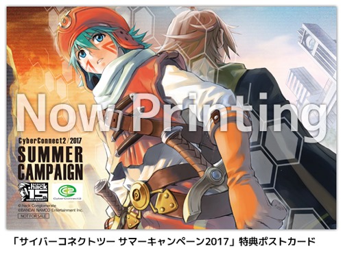 A special CyberConnect2 Summer Campaign 2017 post card will also be available as a bonus for anyone who makes a purchase during the campaign period from August 5 through August 28 at Kotobukiya’s online and retail shops. It features artwork used for the new light novel series that covers the first four .hack games.