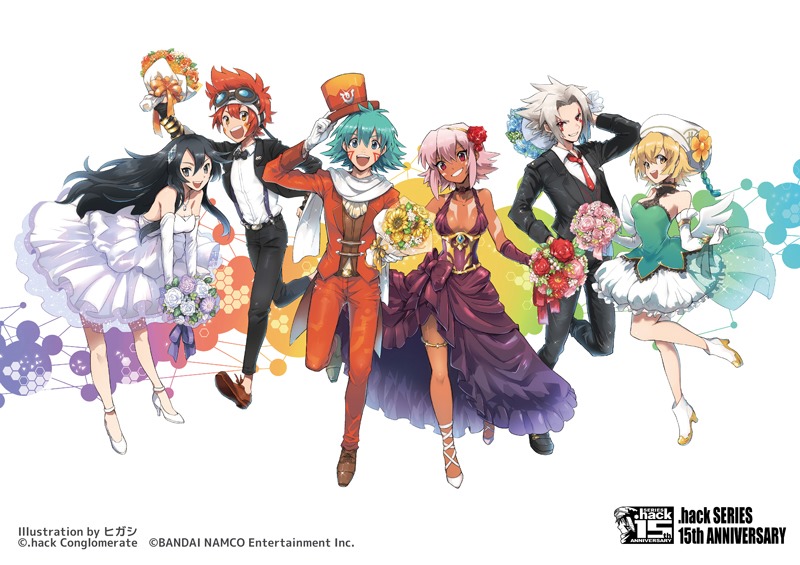 CyberConnect2 is celebrating the .hack series’ 15th anniversary with commemorative goods. The featured characters for the 15th anniversary celebration goods have been newly drawn by artist Higashi. They characters are Kite and BlackRose from .hack/Infection through .hack//Quarantine, Haseo and Atoli from .hack//G.U., Tokio and Saika from .hack//Link.