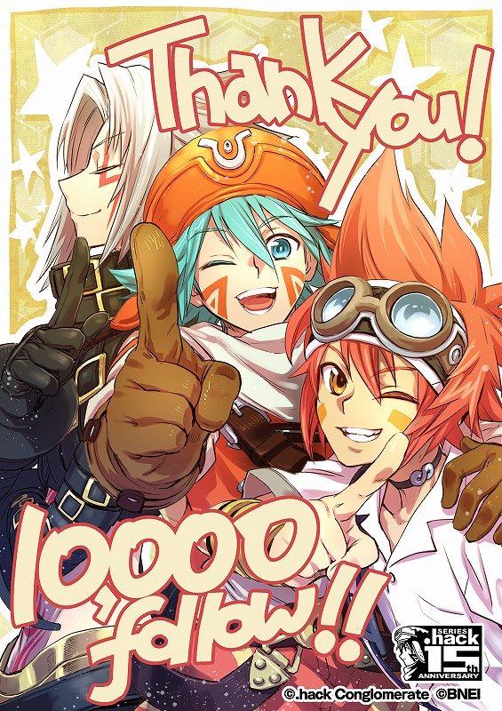 フォロワー1万人達成!みなさま、いつもありがとうございます。感謝の気持ちを込めて、1万人記念イラストをプレゼント!「.hack」シリーズを、引き続き、よろしくお願いします! #ドットハック #dothack pic.twitter.com/TikcNgN8RA