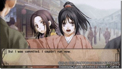 Hakuoki has a really well written and engaging story. Of course, you’ve probably gathered that, because Aksys wouldn’t have taken a chance on something that didn’t. After all, you’re not going to want to spend between four and eight hours reading something that’s tedious and predictable and you especially wouldn’t go back and replay it. While some of the romantic lines do read like something from a Harlequin romance, for the most part it does ring true and will provide plenty of warm, fuzzy feelings. There’s also good pacing and characterization for all the characters, and you can see characters grow throughout the story.