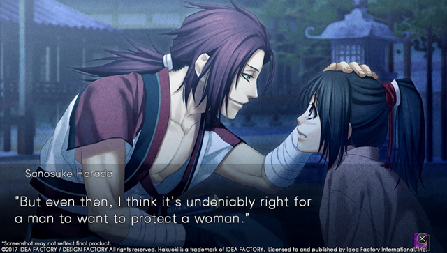 In addition to the release date announcement, new Hakuoki: Kyoto Winds screenshots for Hajime Saito, Heisuke Toudou, Sanosuke Harada, and Chikage Kazama have been released.