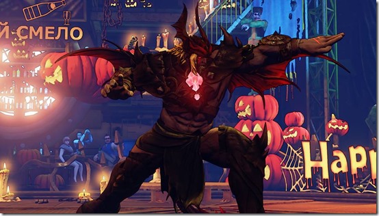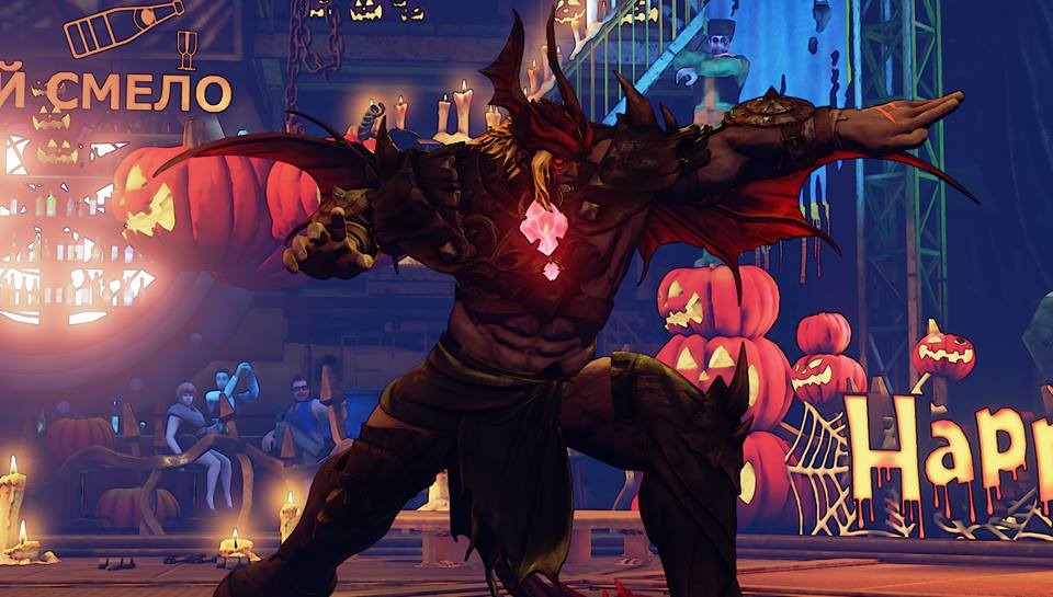 The Halloween-stage is a redecorated version of the Street Fighter V Russia stage. Aside from all the party decorations, Necro from Street Fighter III, and his girlfriend Effie make cameo appearances. You can get it for $1.99/€1.99/£1.29/40,000 Fight Money.