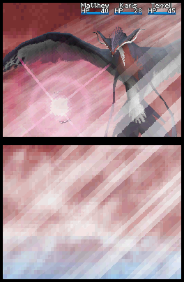 In the first fight, I made everyone use a Djinn to attack. This was a demo, so why bother being conservative? After each Djinni was summoned it floated to the top screen. Before the battle was over, two released Djinn were up there waiting for me to call them back or summon them. All of the Djinn were reset after each encounter.