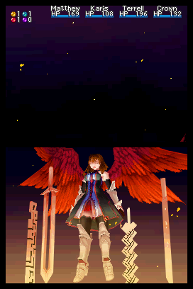Djinn appear to be linked to each character’s class too. I played around with the menus and noticed Knight –> Squire on Matthew’s status screen. Karis, the token magic user, had Magician –> Windseer. Terrell looks like the tough guy of the group with Soldier –> Guard. Golden Sun fans should be familiar with this system too.