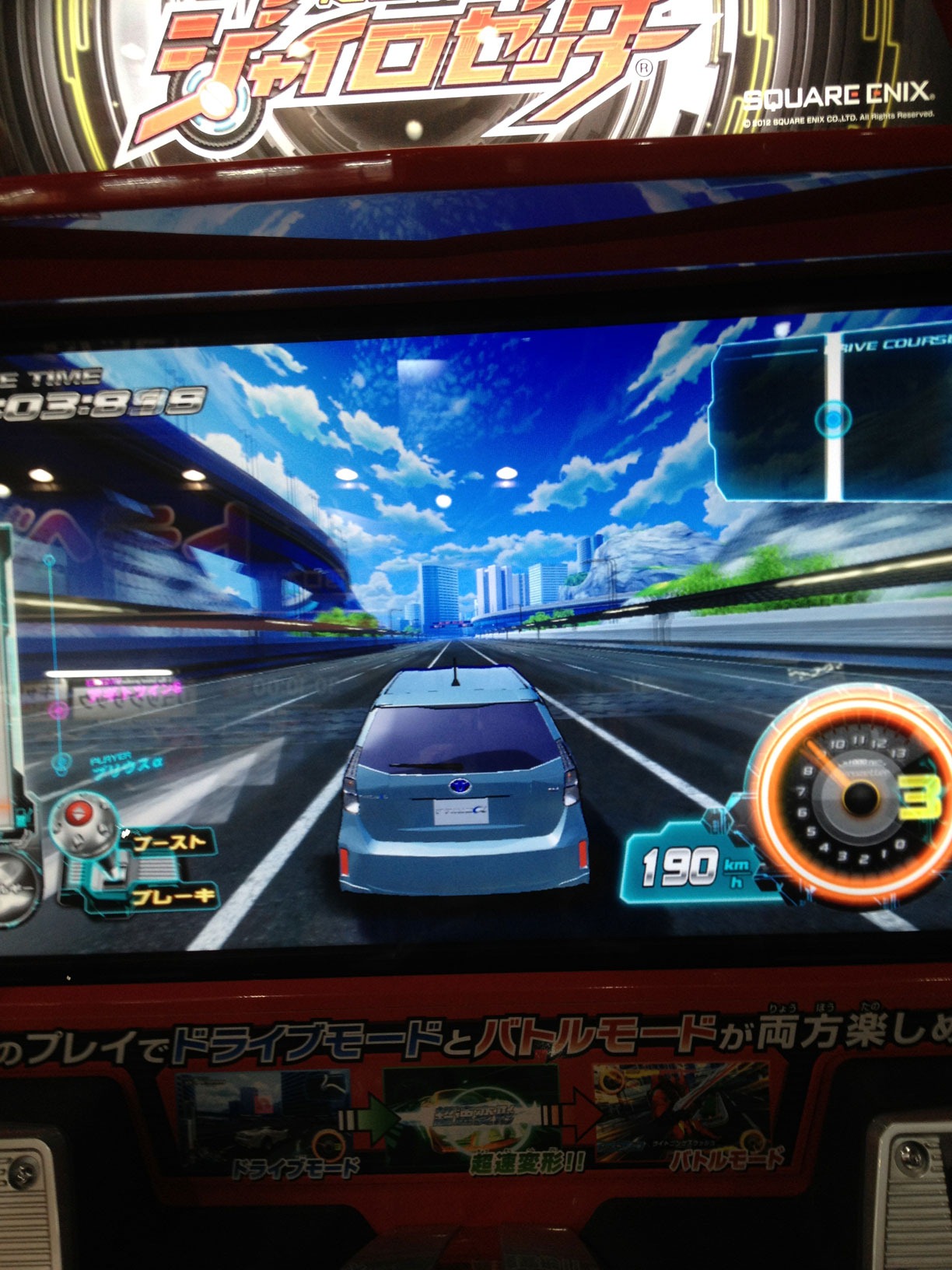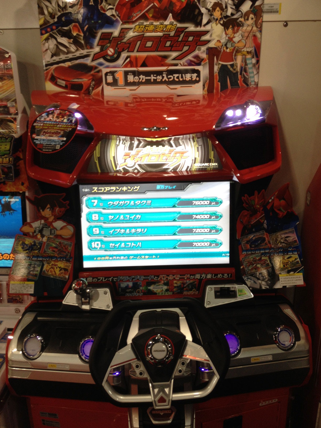 Gyrozetter is part racing game and part robot-paper-scissors. After putting in 100 yen for a play you get a machine card. Mine was the Prius alpha, which transformed into a teal robot with a humongous flashing sword.