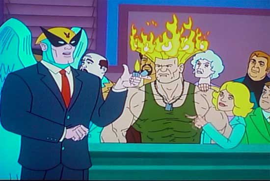 Something unique about Harvey Birdman: Attorney at Law is there are hilarious secret movies that you can unlock during the courtroom session. Without spoiling too much Birdman has to explain why the lighter isn’t relevant in the case. Street Fighter II fans will get a chuckle out of the “it’s a trick lighter” option…