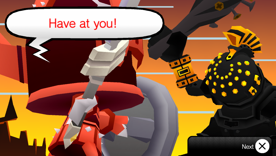 Even when you play single player Picotto Knights gives you three allies. These mercenary knights are actually created by other players and the computer takes control of them in solo mode. Picotto Knights also has online multiplayer and a matchmaking system, but I played Picotto Knights before the servers officially launched. So, my dinosaur-like knight was accompanied by knights created by three Game Arts employees.