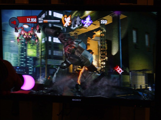 At the PlayStation Move press event, there was a two level demo of The Shoot. The premise is just like Time Crisis or Duck Hunt — stuff comes on the screen (criminal robots, in this case) and you shoot it. Similar to the Wii remote, there is a trigger button underneath the Move’s face buttons. Press it each time to fire. You also have three special moves: rapid fire, shockwave, and a bullet time mode. These are done by pointing the Move to the sky and shooting, shooting down, and spinning in a circle, respectively. A counter on the top of the screen lets you know how many of each special attack you have left. When I shot down a wave of robots without missing I occasionally got more special moves.