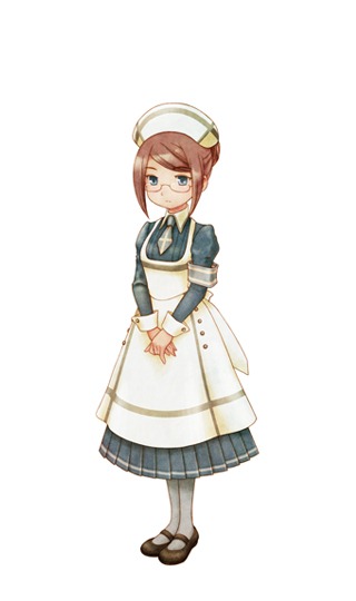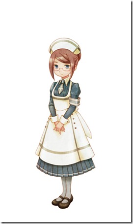 Angela is a nurse working at the local hospital, and the daughter of Guild Master Veronica. While she appears cool and collected on the outside, seldom showing off her emotions with her (understandably sometimes bloody) surroundings, she’s also got her weak side when exposed to sudden and unexpected events. It’s probably because she appears older than she really is that she tries to keep her emotions in check. One wonders what happens if you marry her though with her mother around…