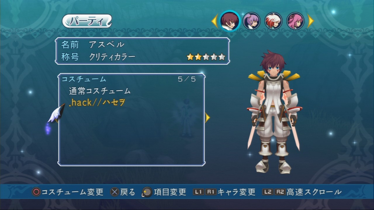 .hack fans can dress Asbel up like Haseo from .hack//G.U. if they don’t mind forking over 400 yen ($4.75).