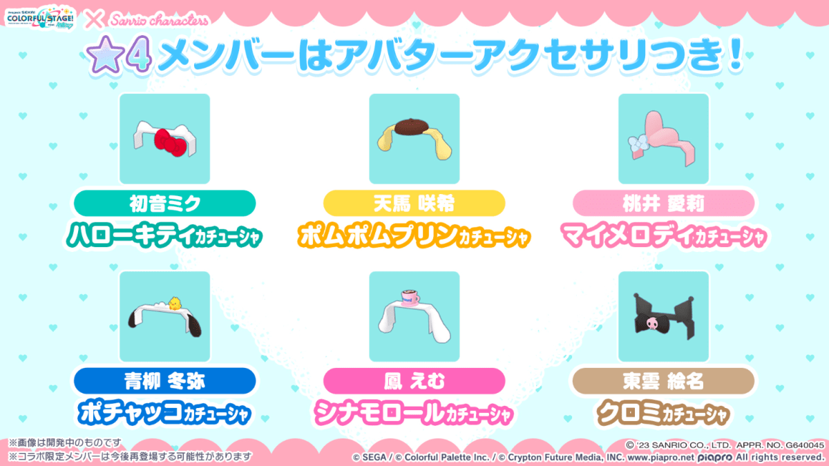 Additionally, if a player pulls one of the six highest rarity Sanrio collaboration cards, they will also receive a headband accessory for their avatar themed based on the mascot they are paired with in the artwork. Also, during the event period, a Hello Kitty virtual avatar will be available at the Virtual Live Shop.