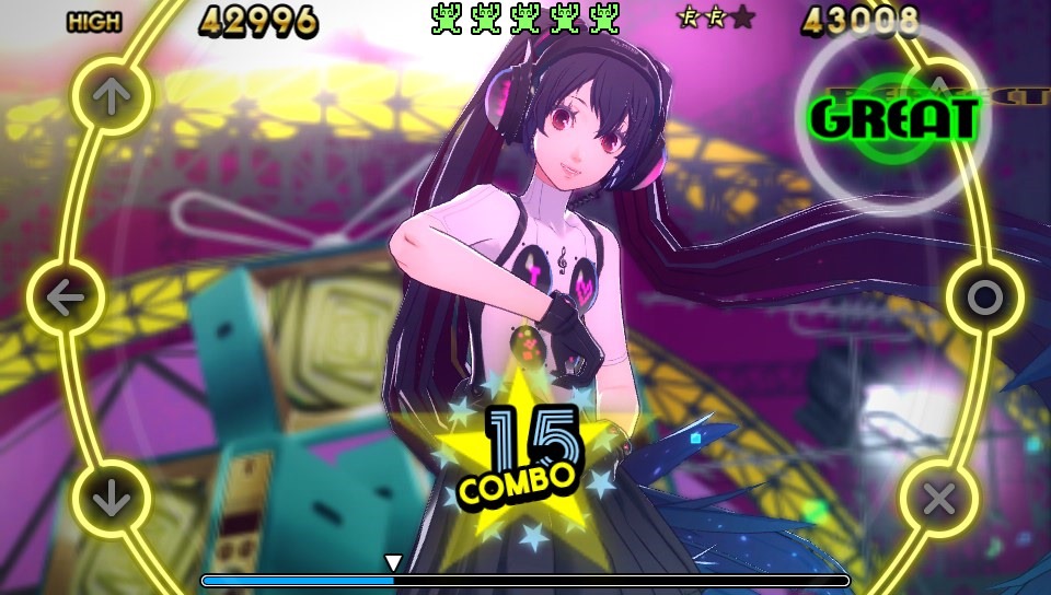 Miku’s Persona 4: Dancing All Night performance is “"Heaven feat. Hatsune Miku (ATOLS Remix).” If people purchase her $4.99 pack on October 20, they’ll find her track under Free Dance. People will also be able to customize her hair color in-game with accessories.