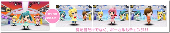All of the CG models in the game are designed to be like Good Smile Company’s figurines. In addition to Hatsune Miku, Luka, Rin, an Meiko are also in Project Mirai. Selectable songs include: My Time, Piano*Girl, Sing & Smile, Tricolor Air Line, Daughter of Evil, and LOL Lots of Laugh.