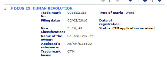 We haven’t, but Square Enix trademarked Deus Ex: Human Revolution in Europe.