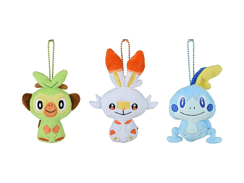 Additionally, this series of goods will include some plush dolls. Grookey, Scorbunny, and Sobble will get cute petit and regular sized plushies, as will their secondary evolutions. The collection will also include a Corviknight plush, complete with its flying taxi and a string for hanging on display or attaching to a bag. Also, the starter plushies will have ball chains attached so you can wear them too.