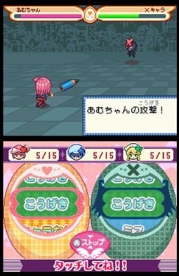 Shugo Chara! Amu no Nijiro Chara Change takes place after the point in the Shugo Chara! storyline where Amu has discovered her fourth guardian, Dia. So she’s already a member of Seiyo Elementary’s Guardians student council as the Joker. This means that, through-out the game, there will occasionally be RPG style battles against X Eggs and X Characters Amu will have to handle with the help of Ran, Miki and Su.