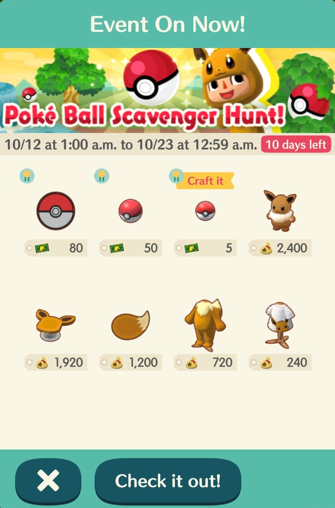 - Eevee Table: 80 Poke Balls and 1,920 Bells