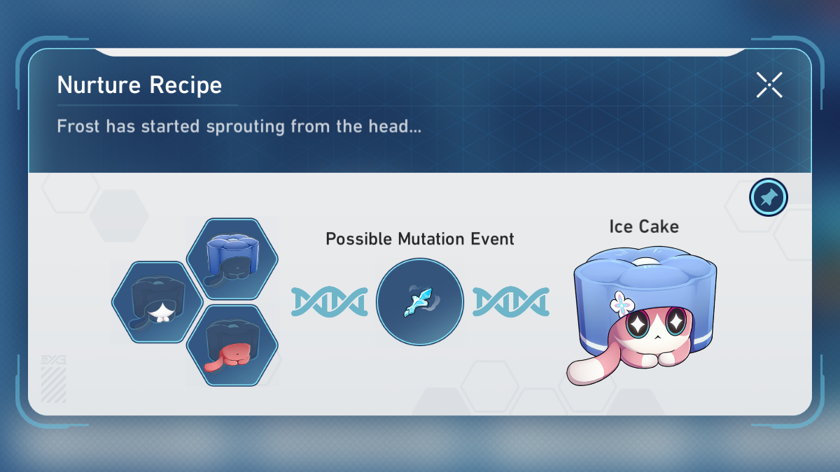 Ice Cake is the March 7th cat, and it’s just as cute as the person it resembles. To create Ice Cake, you’ll need a blue shell, pink filling, and the pattern that kind of looks like middle-parted bangs. You’ll also need to feed it a Core of Ice. You can get Core of Ice from Everwinter Shadewalkers and the Administrative District Shop in Belobog.