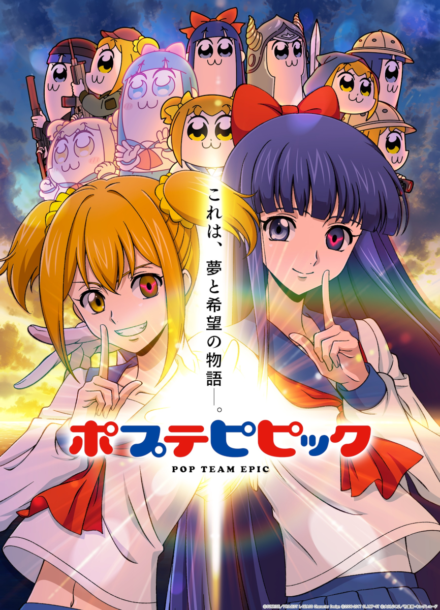 There is also a two-way collaboration prank between Code Geass: Lelouch of the Rebellion and Pop Team Epic. The respective social media account for each franchise published a new poster with the character designs based on the other title.